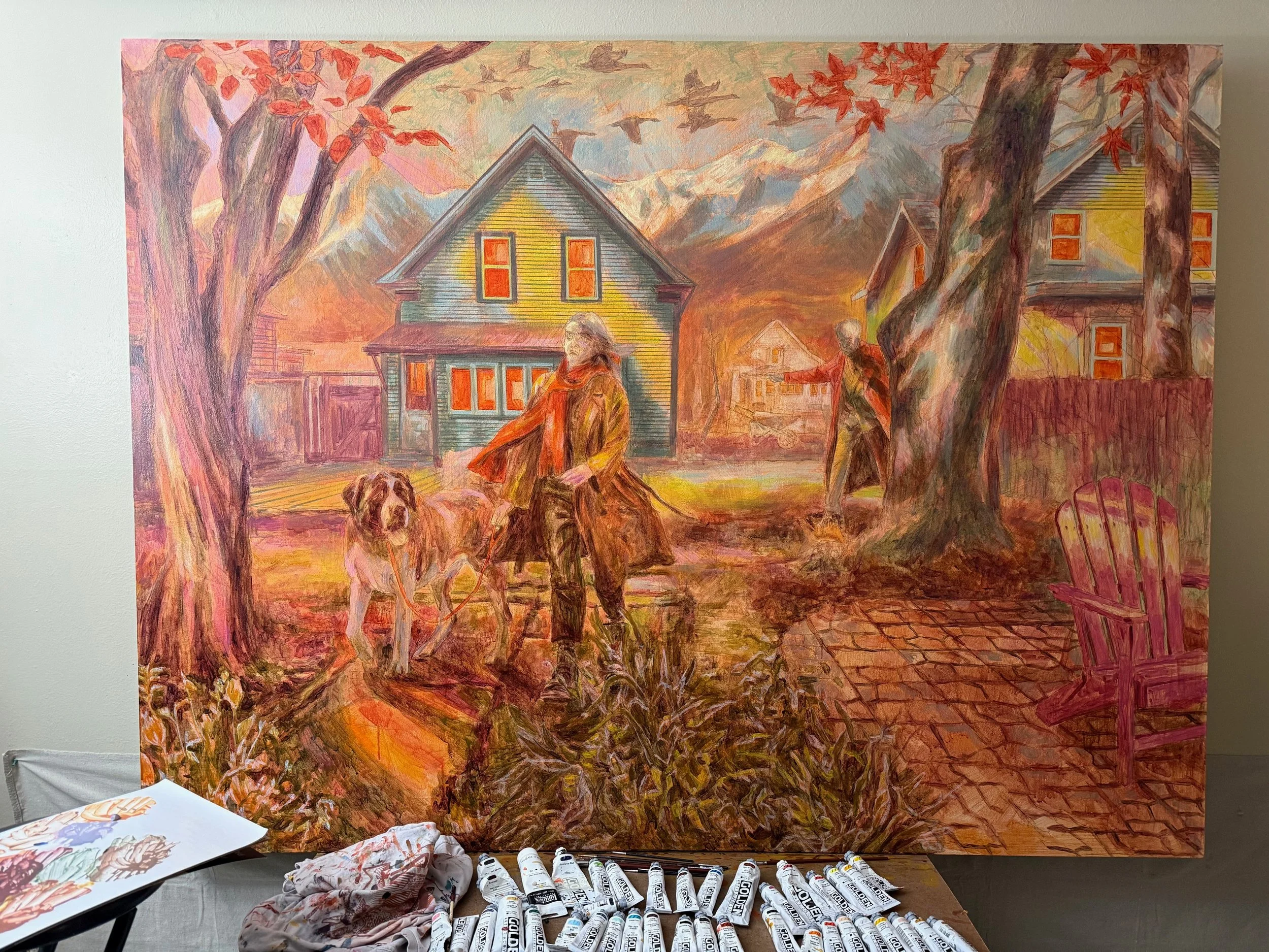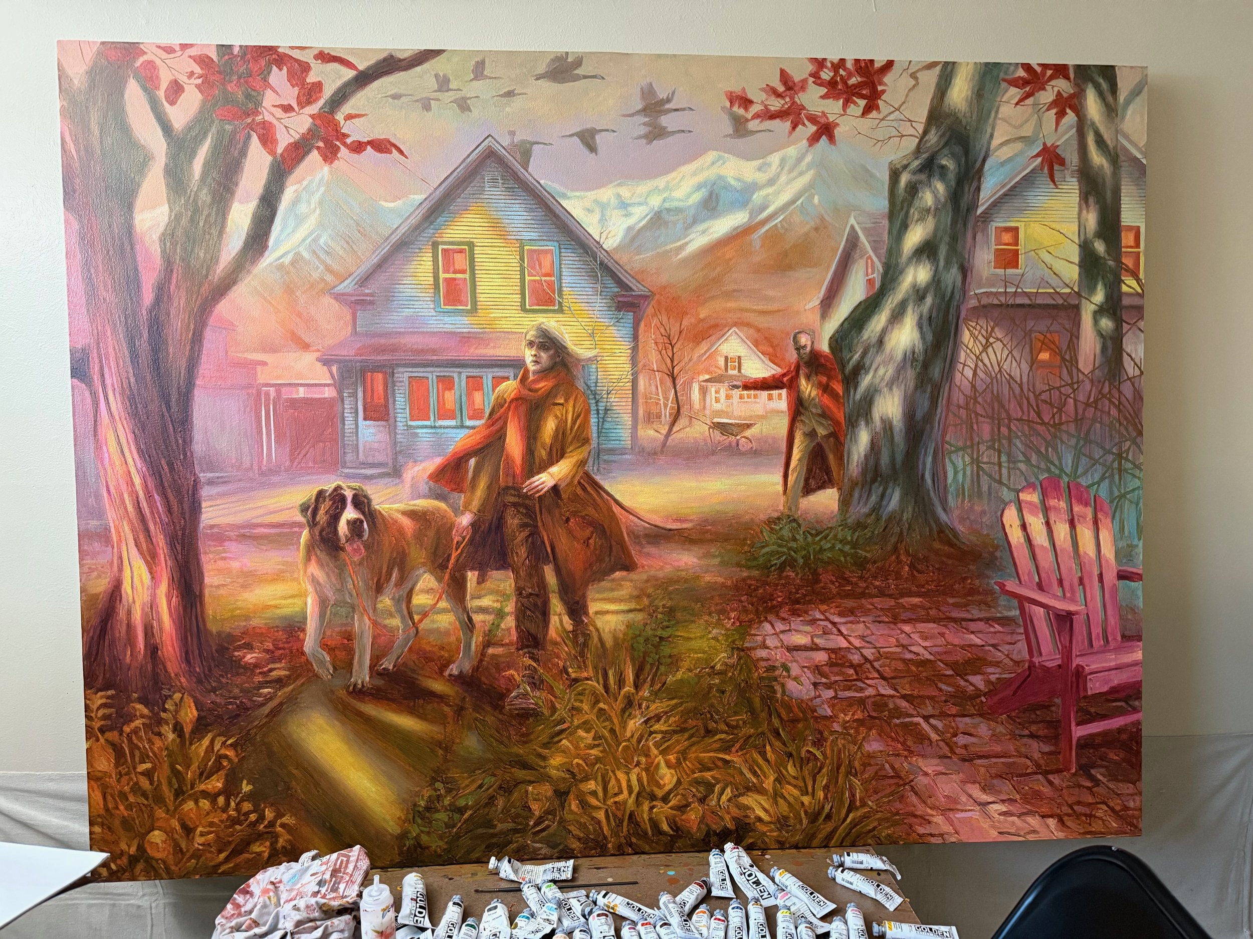 Currently working on “Slipping Away” Acrylic on Linen 62”/80”